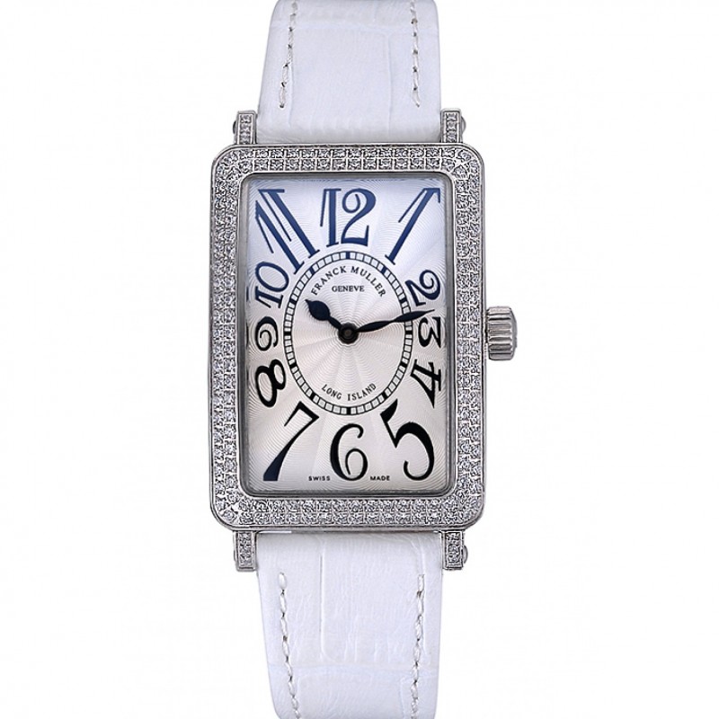 Franck Muller Long Island classique cadran blanc diamants boîtier blanc bracelet en cuir 622368