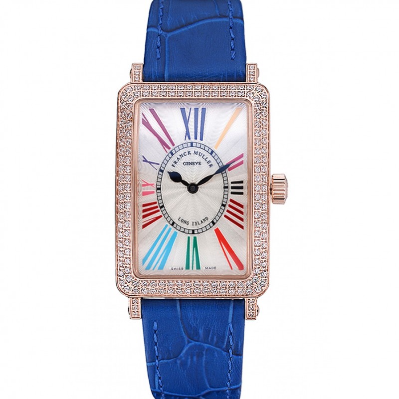 Pas Cher Franck Muller Long Island Classic White Dial Diamonds Case Blue bracelet en cuir 622376