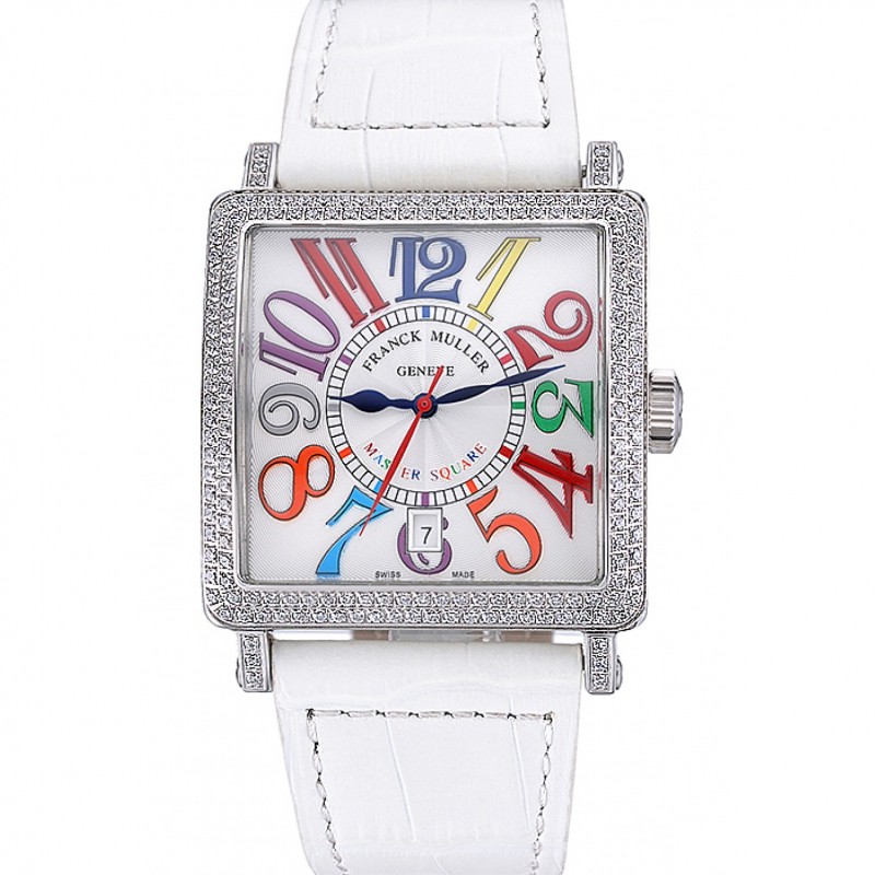Franck Muller Master Square Couleur Rêves de diamants boîtier blanc bracelet en cuir 622356