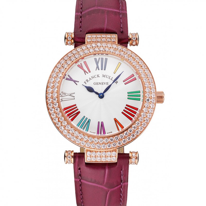 Franck Muller Double Mistery Ronde Cadran Blanc or rose prune bracelet en cuir