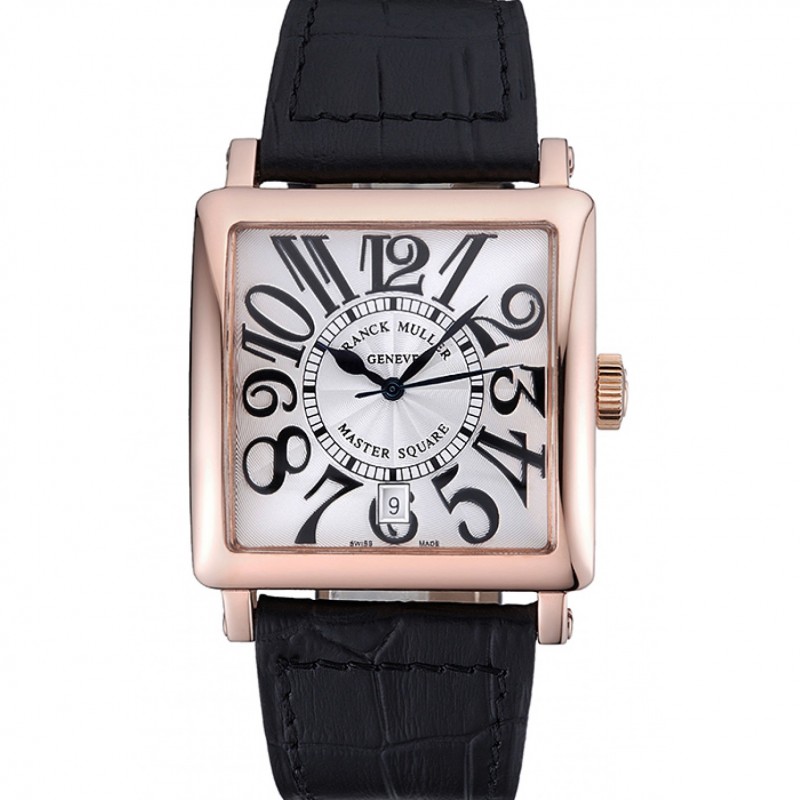 Franck Muller Master Square cadran blanc boîtier en or noir bracelet en cuir 622354