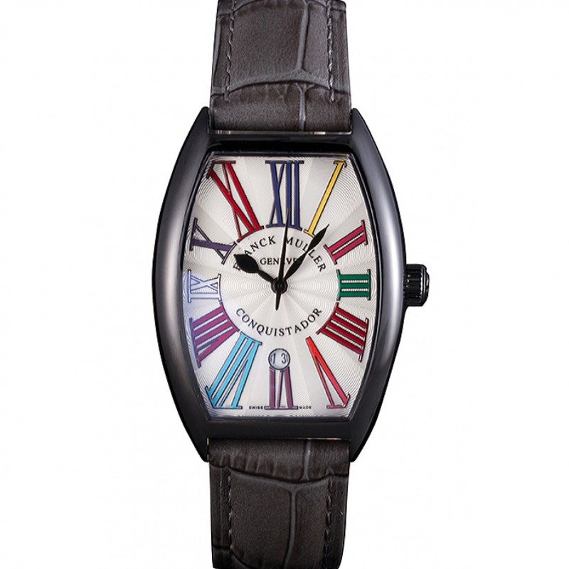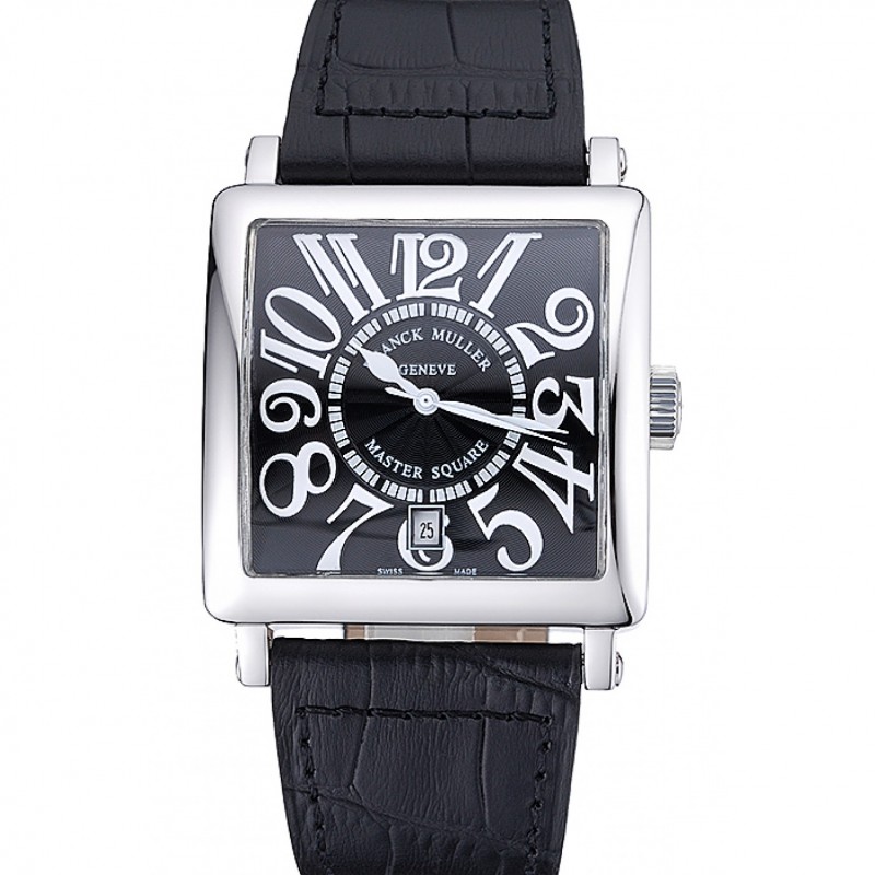 Franck Muller Master Square Cadran Noir Argent boîtier noir bracelet en cuir 622353
