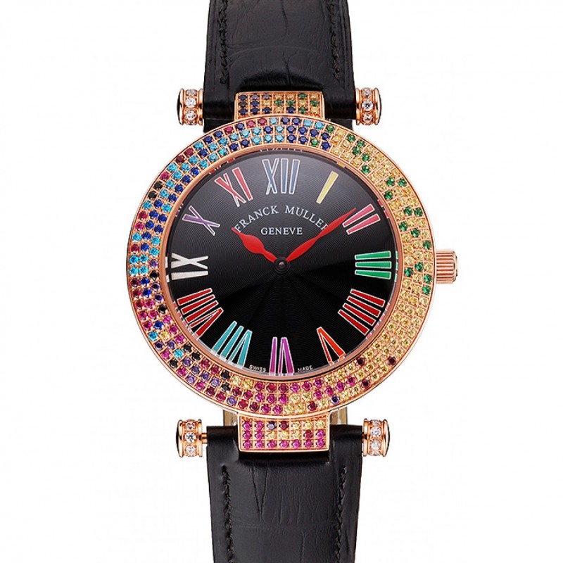 Franck Muller Double Mistery 4 Saisons Cadran Noir Or Rose Bracelet en cuir noir