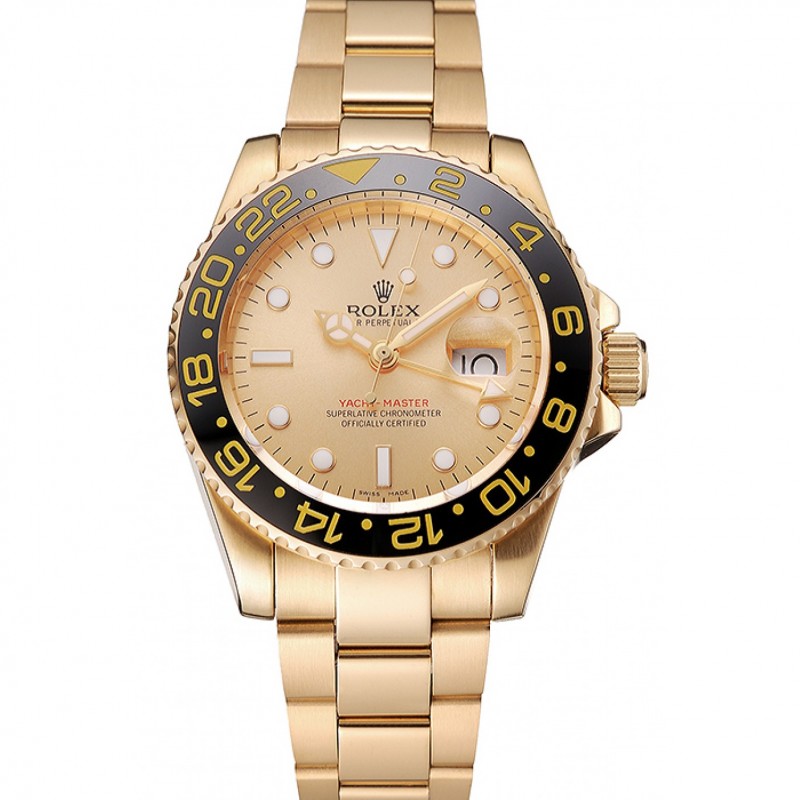 Pas Cher Suisse Rolex GMT Master II Or cadran noir lunette en or Boîtier et bracelet 1453749