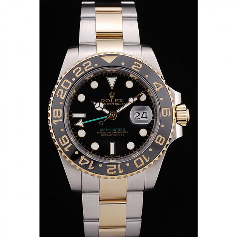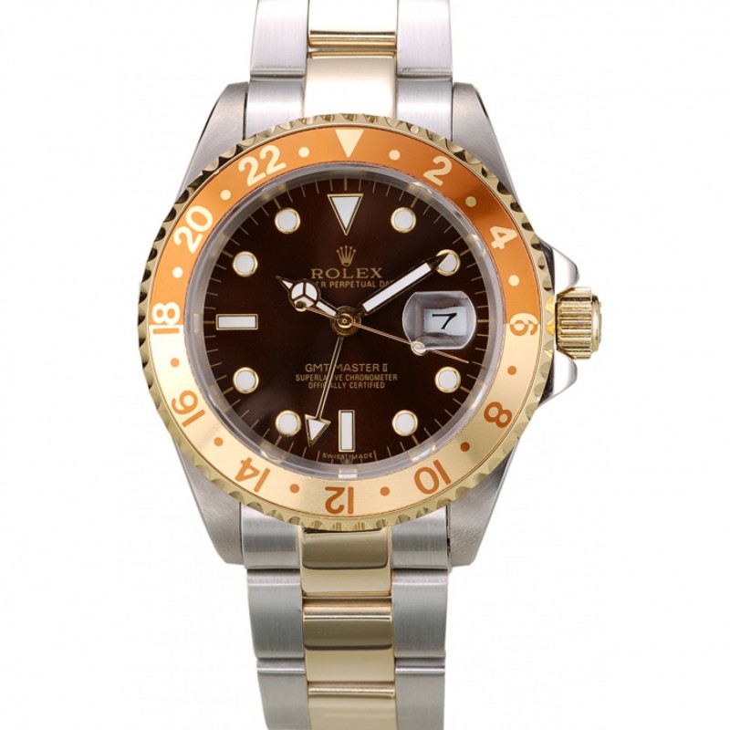 Pas Cher Replique Montre Rolex GMT Master II de couleur or céramique Lunette Brown Cadran