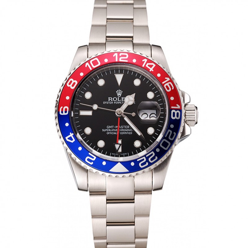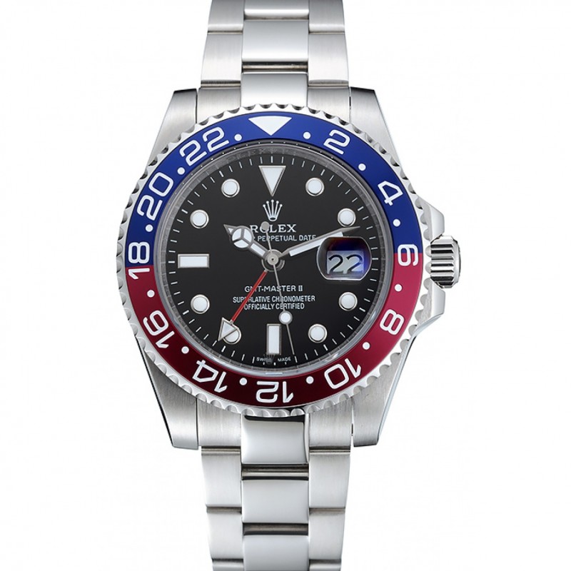 Suisse Rolex GMT Master II cadran noir Pepsi Bezel Boîtier en acier inoxydable et bracelet 1453751