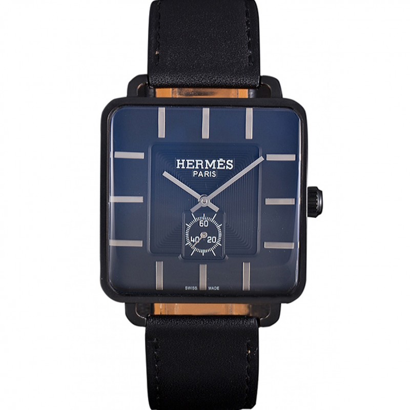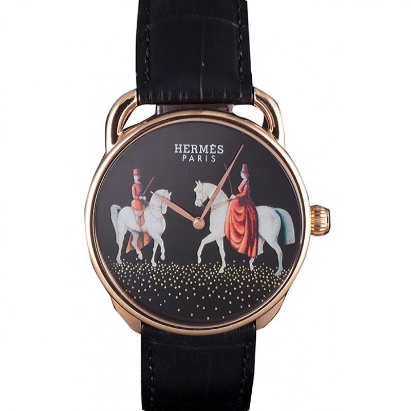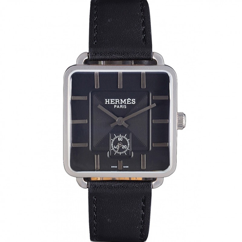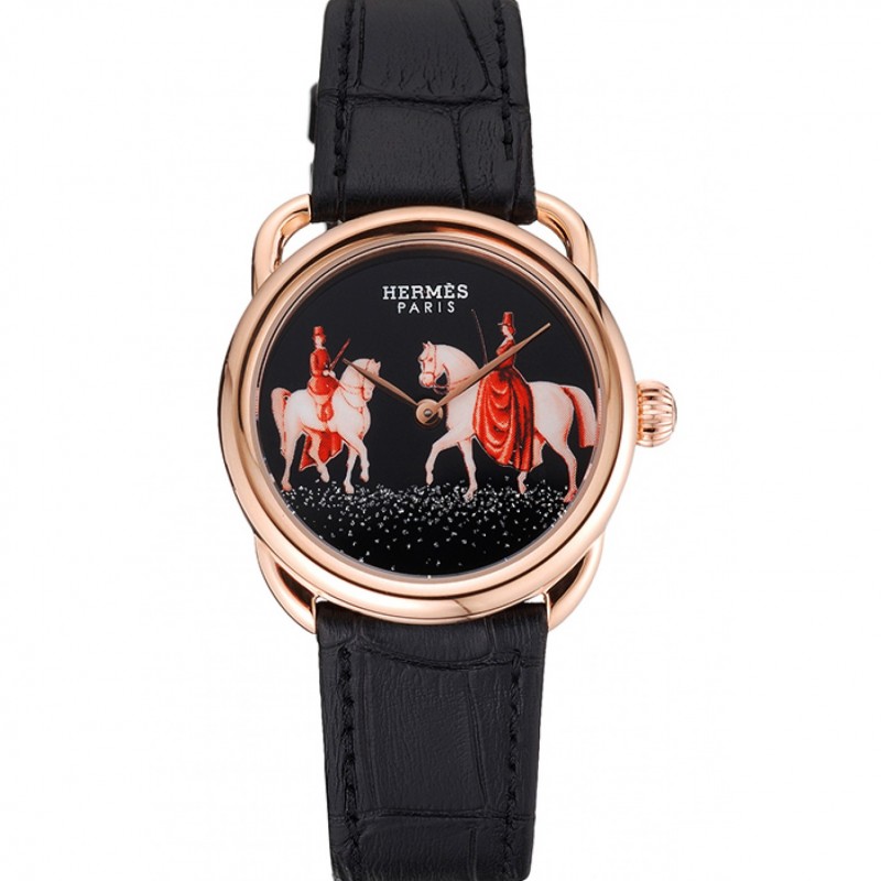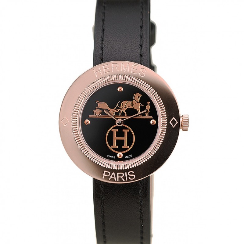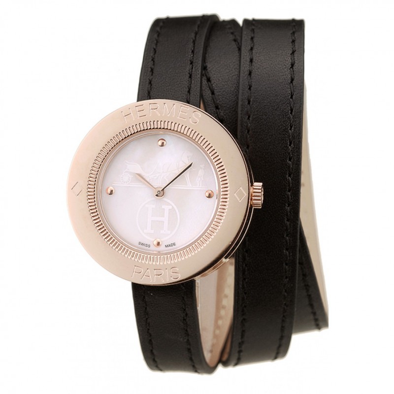Meilleur Replique Montre Hermes classique MOP cadran noir Allongée bracelet en cuir