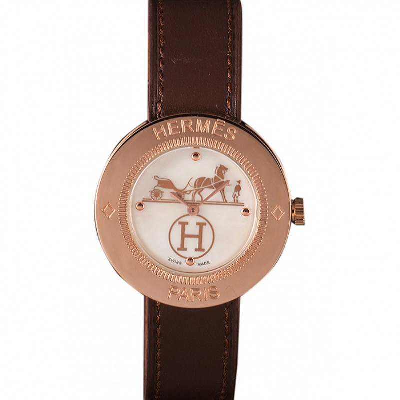 Hermes classique MOP cadran brun Bracelet en cuir 801389