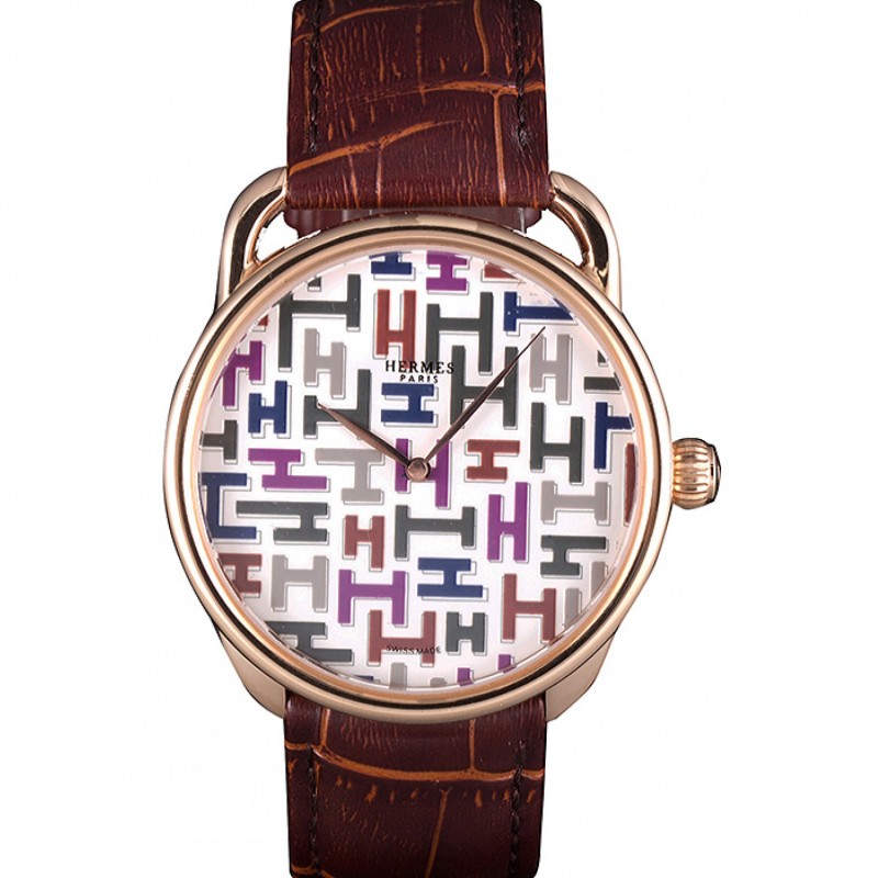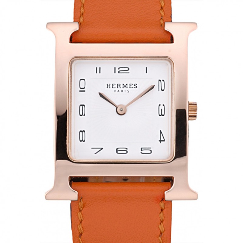 Haute qualité Hermes H lunette en or Heure Orange Rose bracelet en cuir cadran blanc 80234