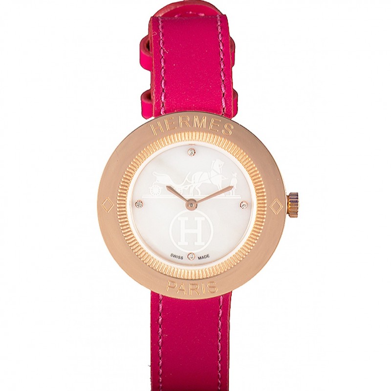 Hermes classique MOP Dial Magenta Bracelet en cuir 801388