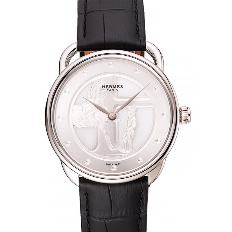 Hermes classique Croco argent Bracelet en cuir Cadran 801400