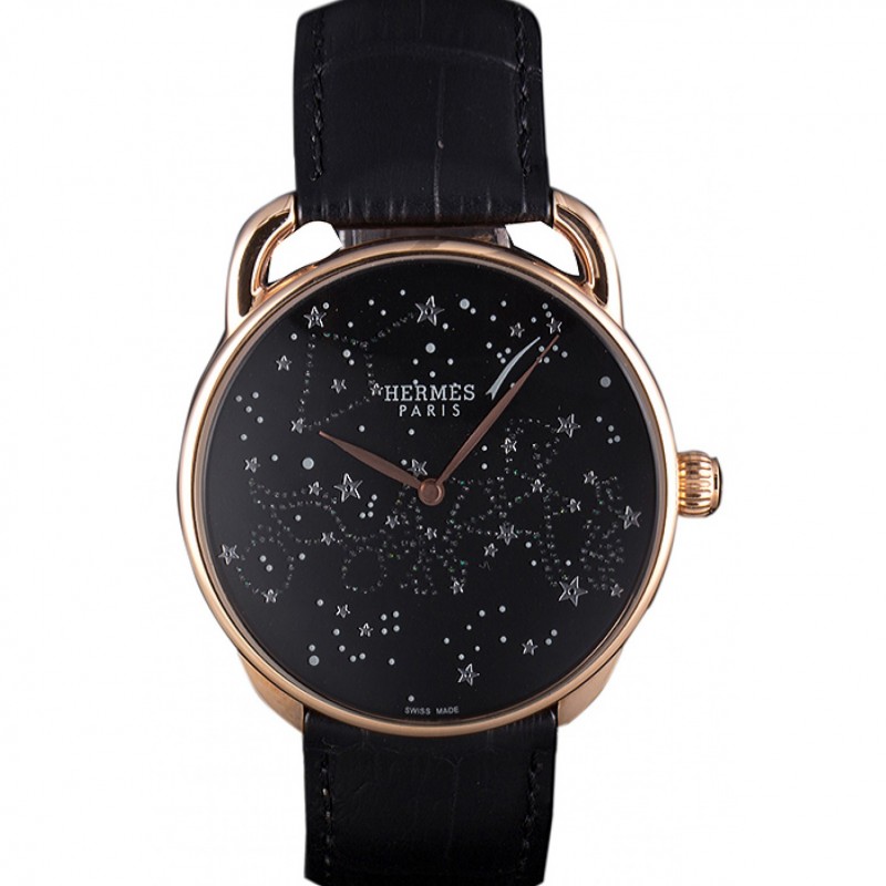 Hermes classique Croco bracelet en cuir cadran noir 801405