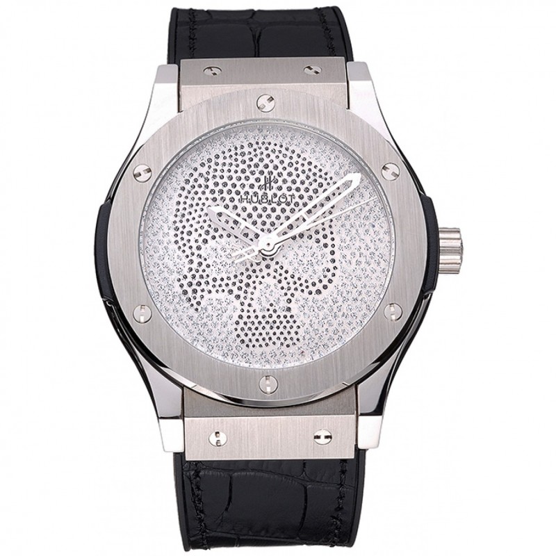 Hublot Classic Fusion diamant crâne cadran boîtier en acier inoxydable bracelet en cuir noir 622814