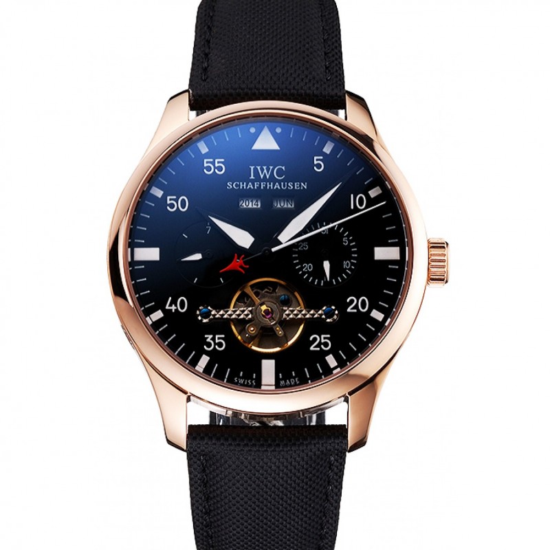 IWC Pilot Perpétuel Cadran Noir Or Rose Noir Bracelet Textile