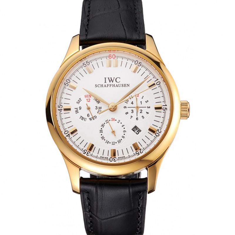 Calendrier suisse IWC Portugieser Perpetual cadran blanc boîtier en or Bracelet en cuir noir