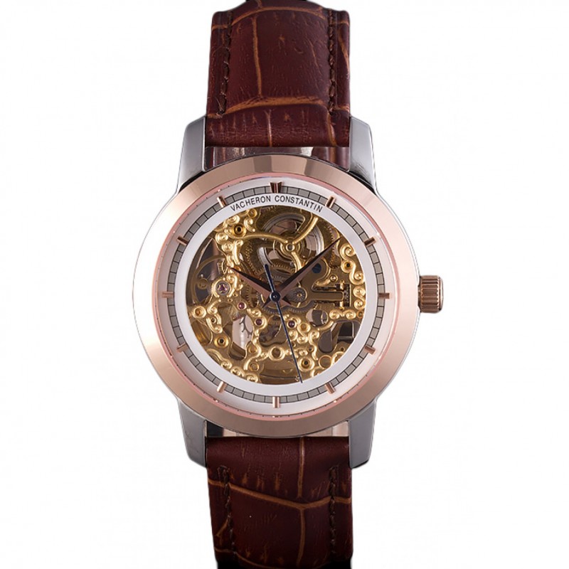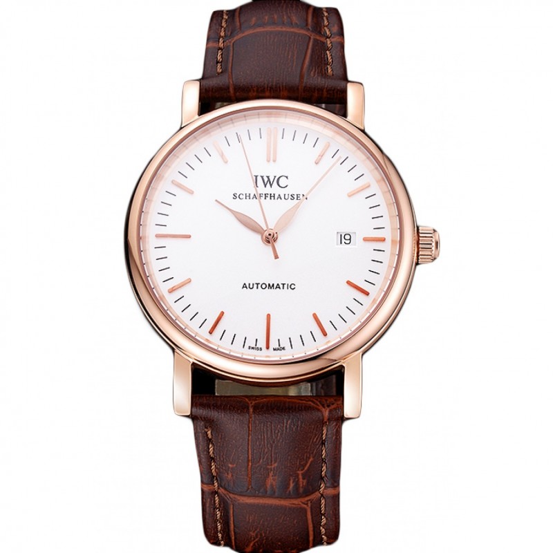 Cas suisse IWC Portofino or blanc cadran brun Bracelet en cuir 622668