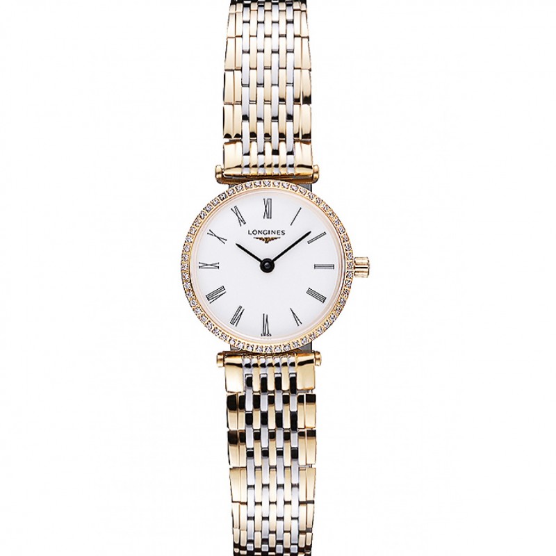 Longines La Grande Classique Deux Band Tone cadran blanc Diamond Bezel Femme 622104