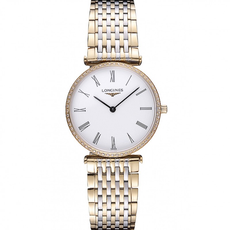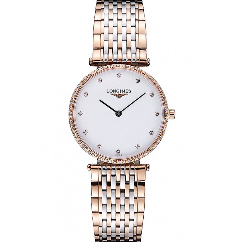 Longines La Grande Classique Deux Band Tone Blanc Diamond Bezel Dial Homme 622103