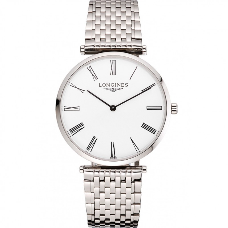 Suisse Longines Grande Classique Cadran Blanc Cas en acier inoxydable chiffres romains et bracelet