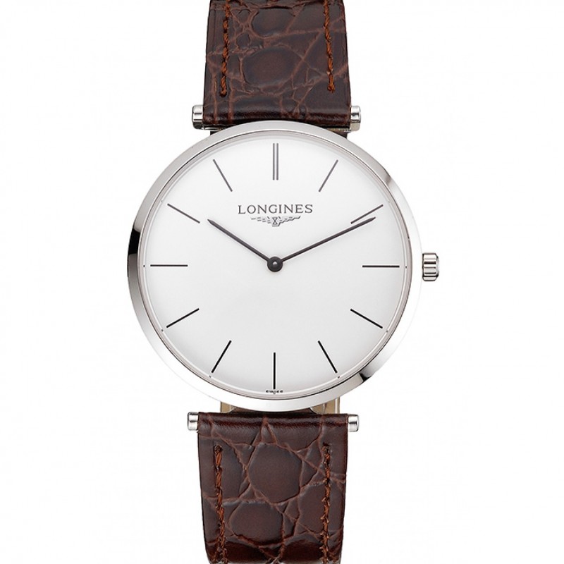 Suisse Longines Grande Classique Cadran Blanc Acier inoxydable bracelet en cuir brun