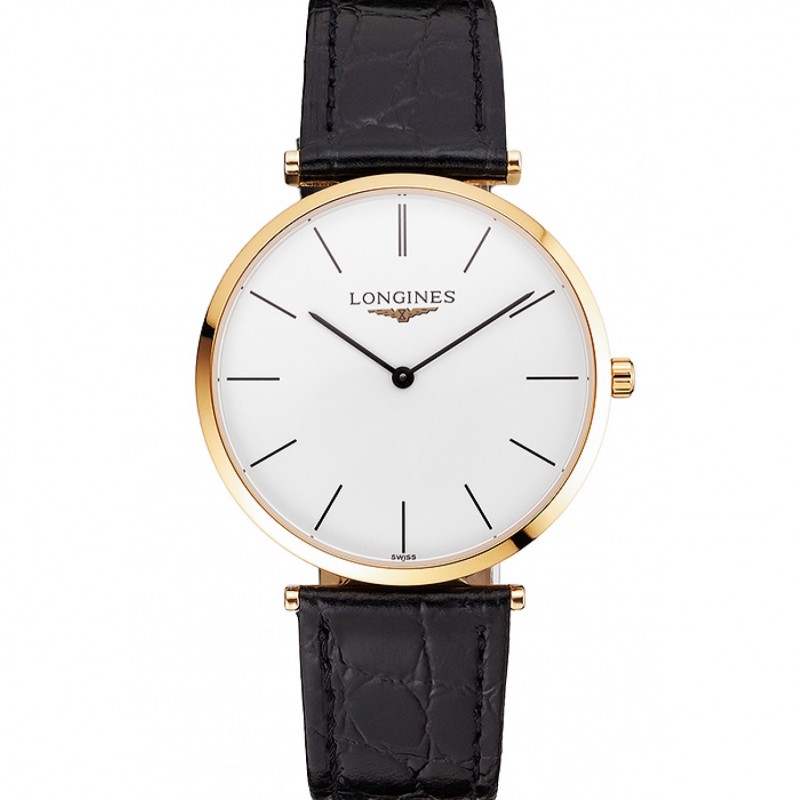 Suisse Longines Grande Classique Cadran Blanc boîtier en or Bracelet en cuir noir