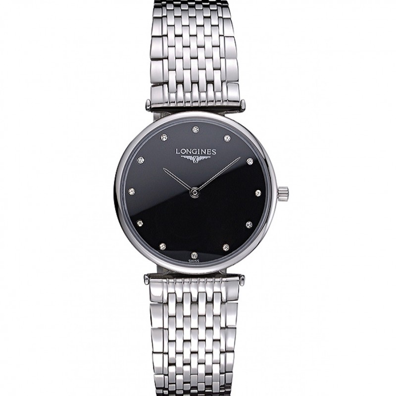 Longines La Grande Classique Diamant Cadran Noir Acier inoxydable Marqueurs Homme 622111