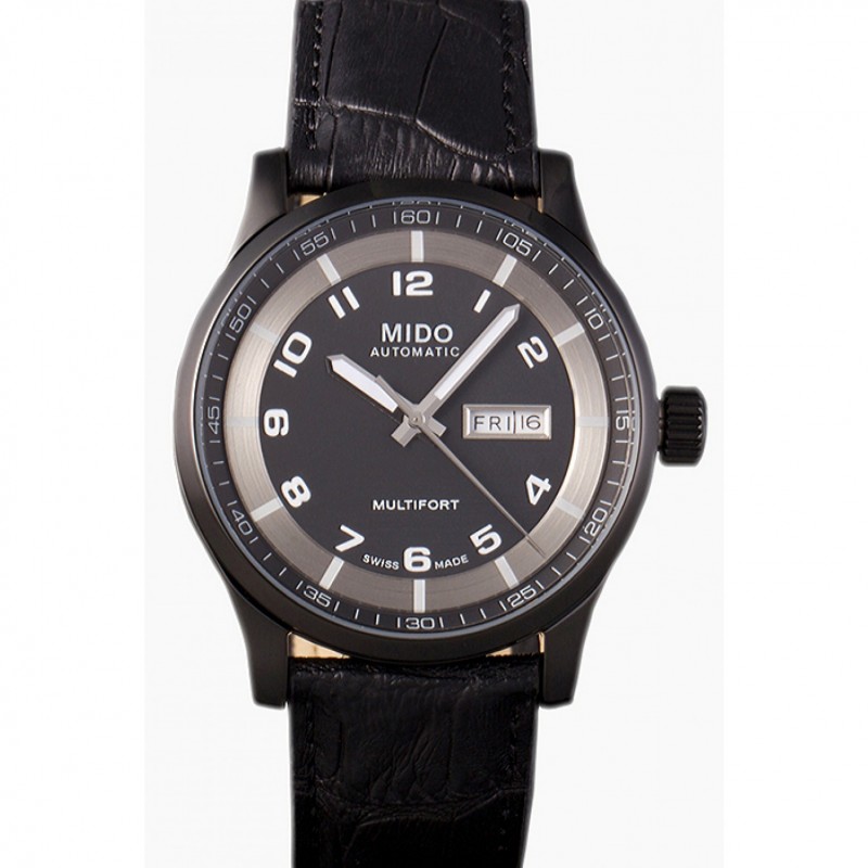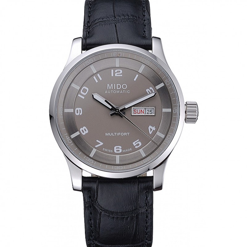 Mido Multifort cadran gris bracelet en cuir noir 622179