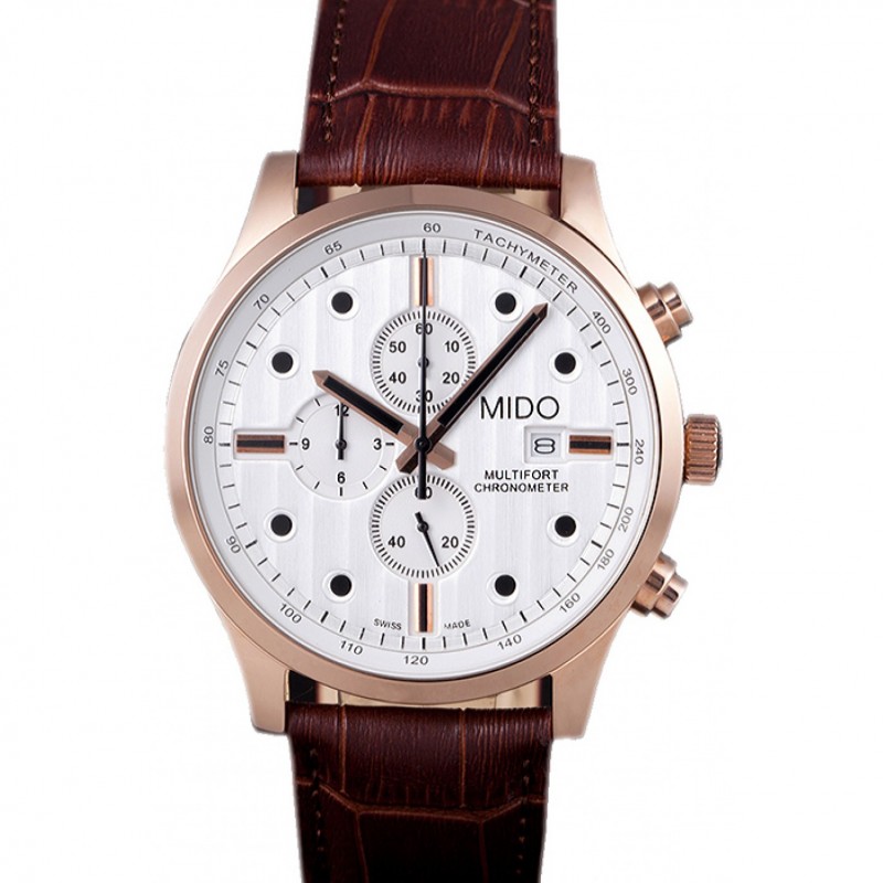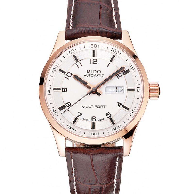 Meilleur Replique Montre Mido Multifort Brown Croco bracelet en cuir cadran blanc 80287