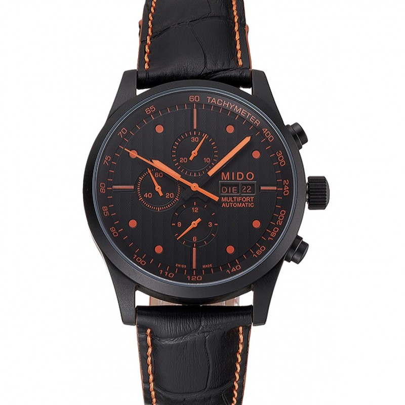 Mido Multifort cronographe All Black& Orange Dial bracelet en cuir noir 622181