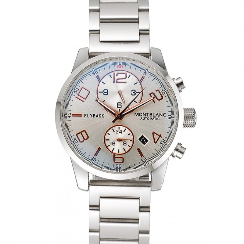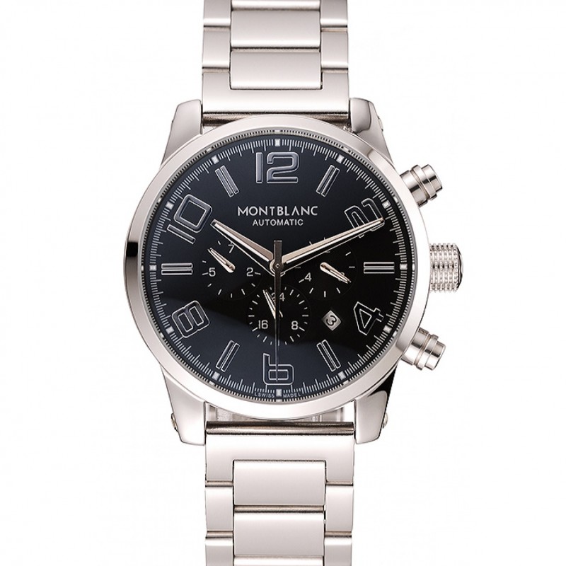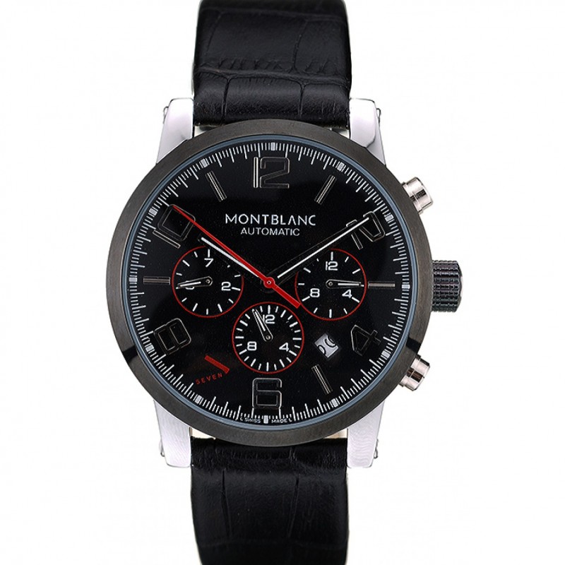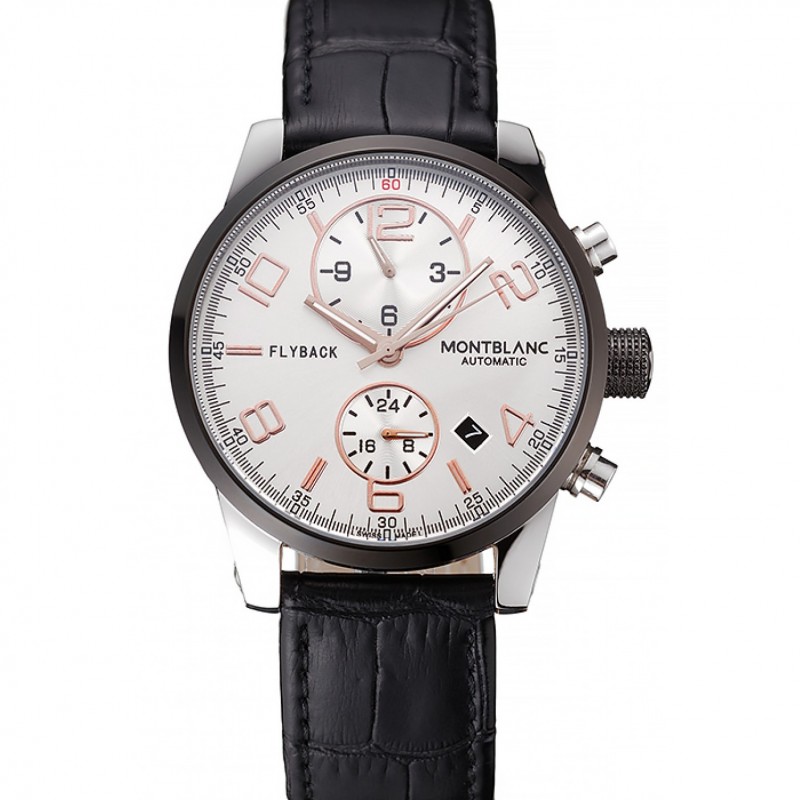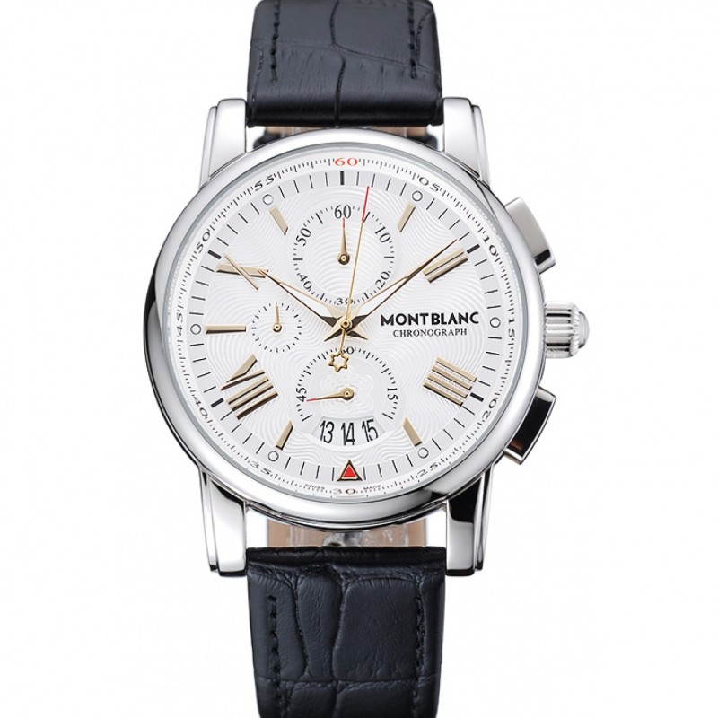 Montblanc Chronographe Cadran Cuir Noir Blanc Bracelet Argent Cas 1454114