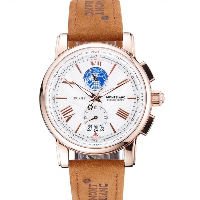 Montblanc Twinfly Chronographe Cadran Blanc Brown Suede Bracelet en cuir 1454116