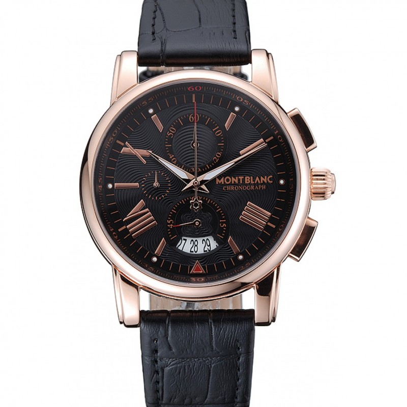Montblanc Chronographe cadran noir en cuir noir Bracelet en or rose cas 1454110