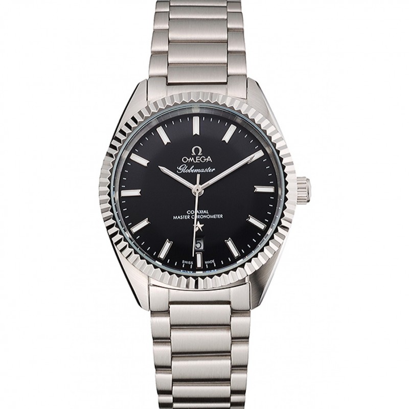 Omega Globemaster cadran noir boîtier en acier inoxydable et bracelet