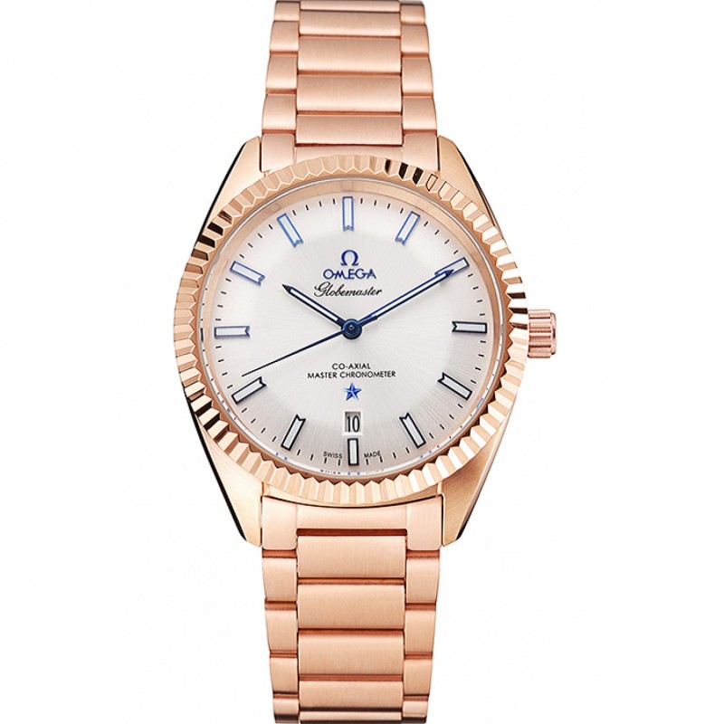 Haut Gamme Omega Globemaster Cadran Blanc or rose et bracelet