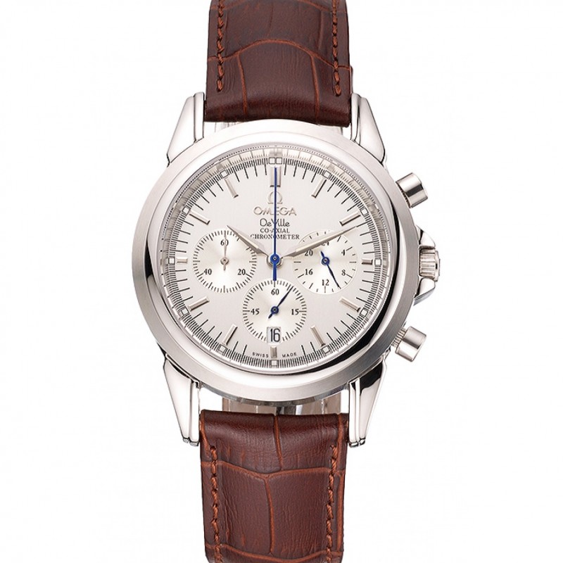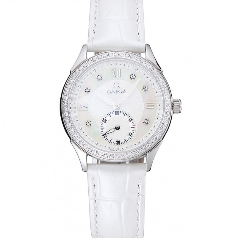 Omega DeVille Prestige Blanc cadran en argent diamant Caisse blanche Bracelet en cuir 1454119