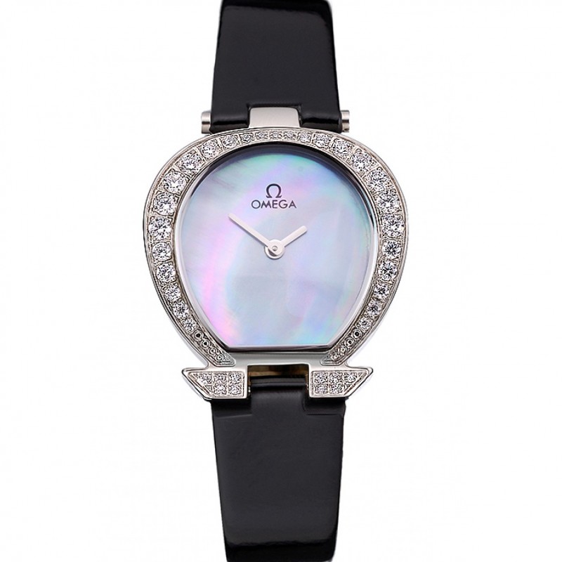 AAA Replique Montre Omega Ladies Watch Dial Pearl Boîtier en acier inoxydable avec des diamants bracelet en cuir noir 622828