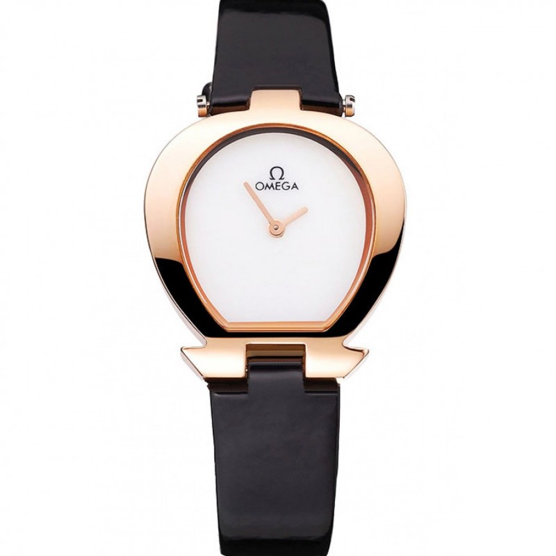 AAA Replique Montre Omega Montre cadran blanc boîtier en or bracelet en cuir noir 622820