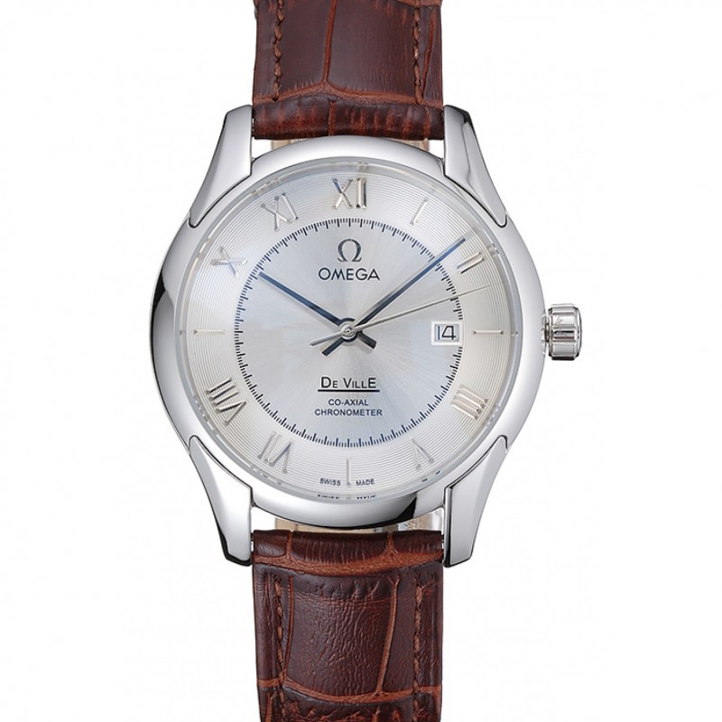 Omega DeVille cadran argenté Boîtier en acier inoxydable bracelet en cuir brun 622830