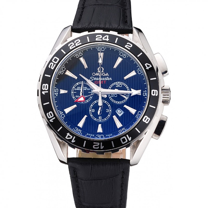 Omega Seamaster Aqua Terra Chrono GMT cadran noir Bracelet en cuir noir 622535