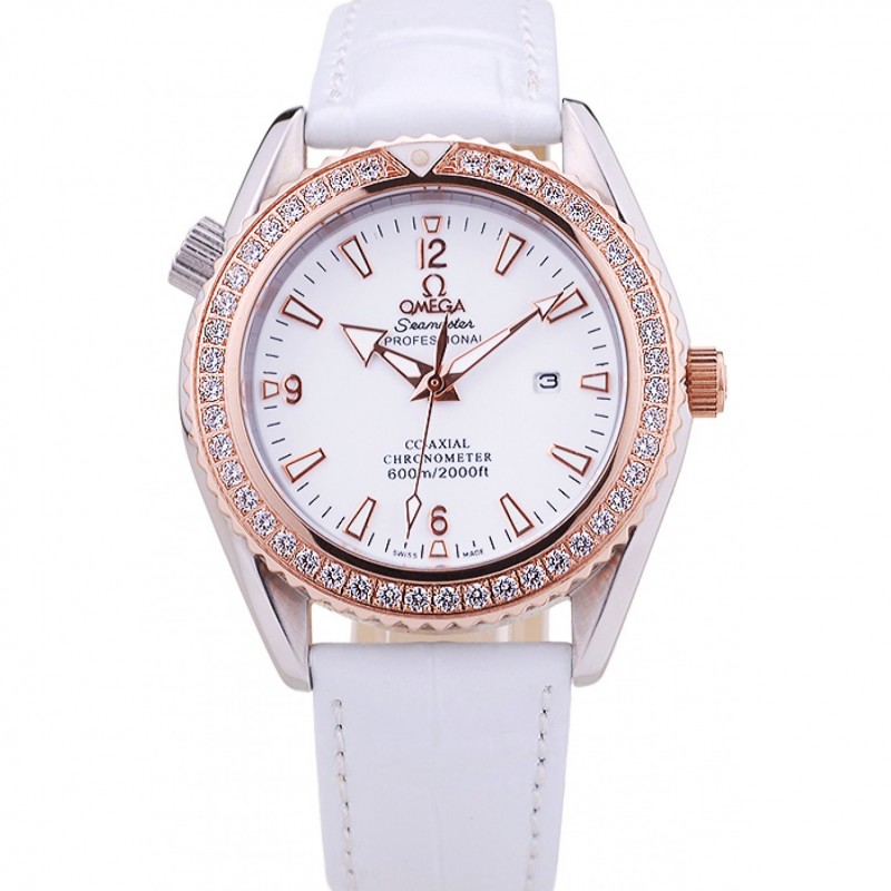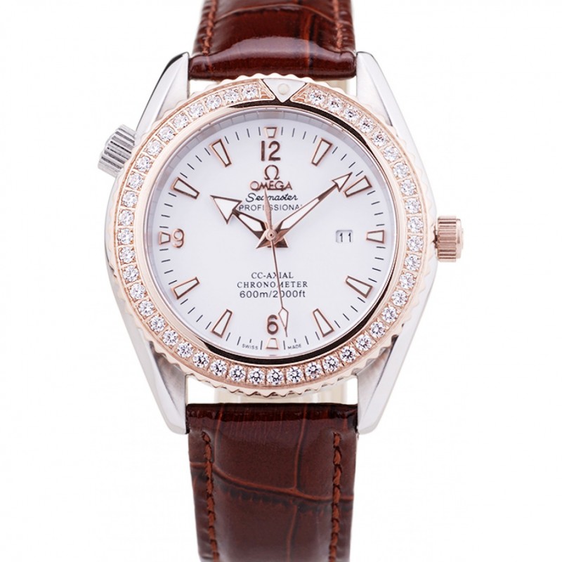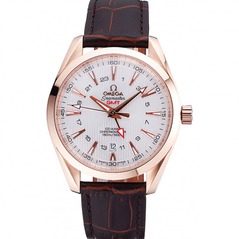 Omega Seamaster Planet Ocean GMT cadran blanc boîtier en or rose Brown bracelet en cuir 622400