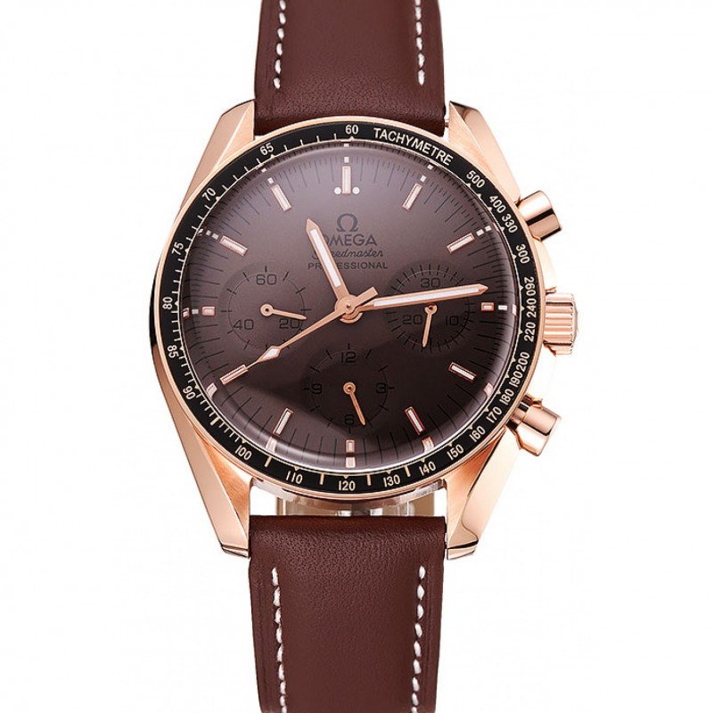 Swiss Omega Speedmaster Professional Brown Dial Or Marron Bracelet en cuir 1453939