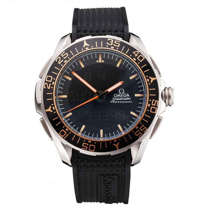 Omega Speedmaster Skywalker X-33 cadran noir orange sur fond noir Lunette Boîtier en acier inoxydable bracelet en caoutchouc noir