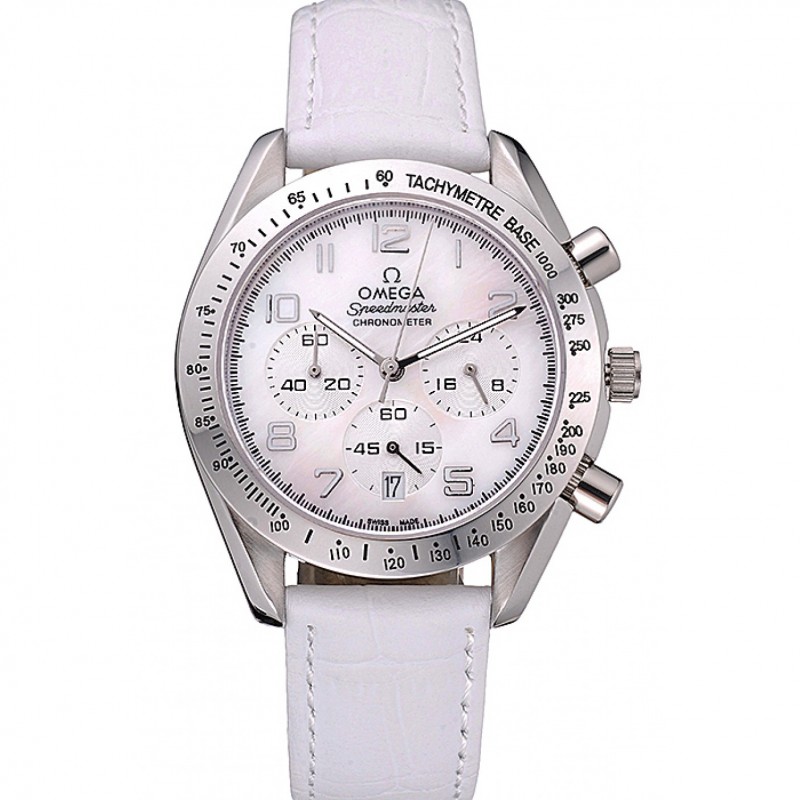 Omega Speedmaster Chronographe Cadran Blanc Bracelet en cuir blanc 622452