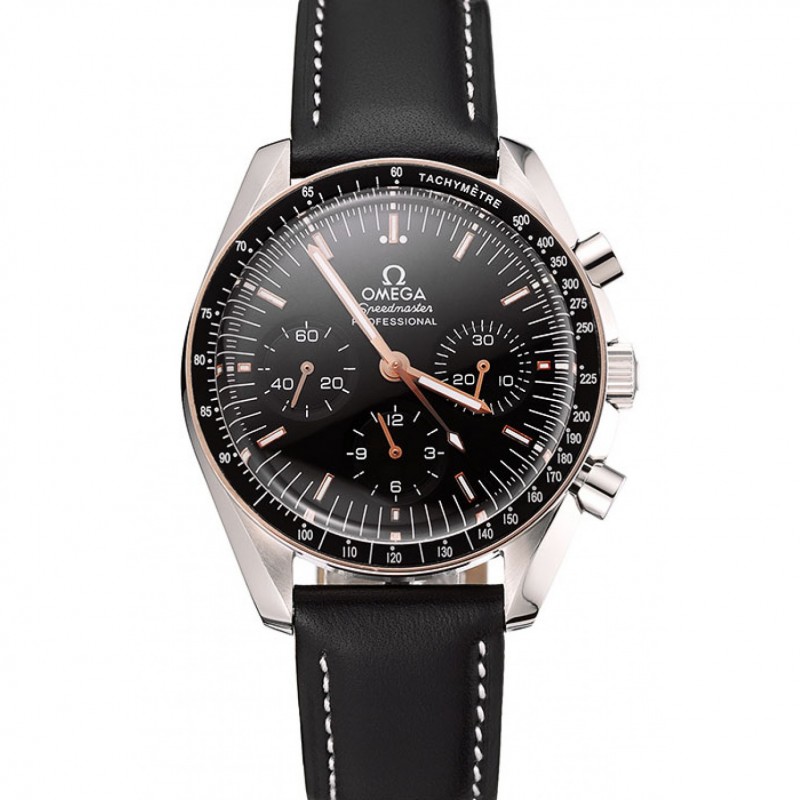 Swiss Omega Speedmaster Professional cadran noir or Accents noir Bracelet en cuir 1453937