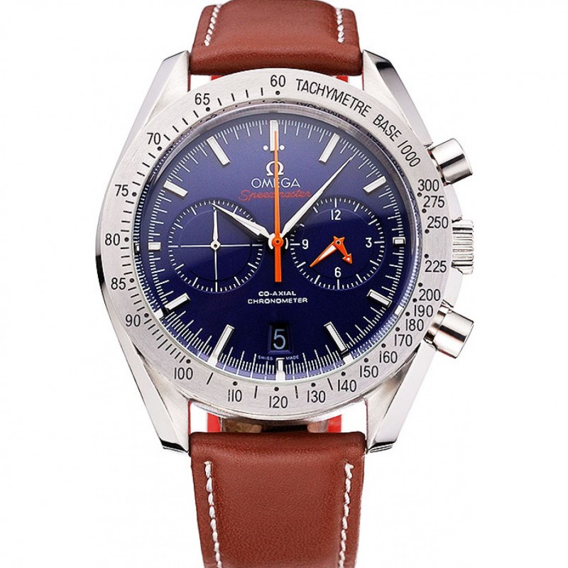 Omega Speedmaster cadran bleu Boîtier en acier inoxydable bracelet en cuir brun 622807