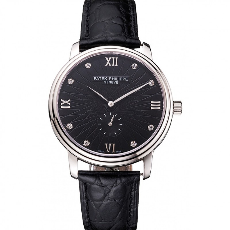 Meilleur Replique Montre Patek Philippe Calatrava Gris foncé Cadran Boîtier en acier inoxydable Bracelet en cuir noir