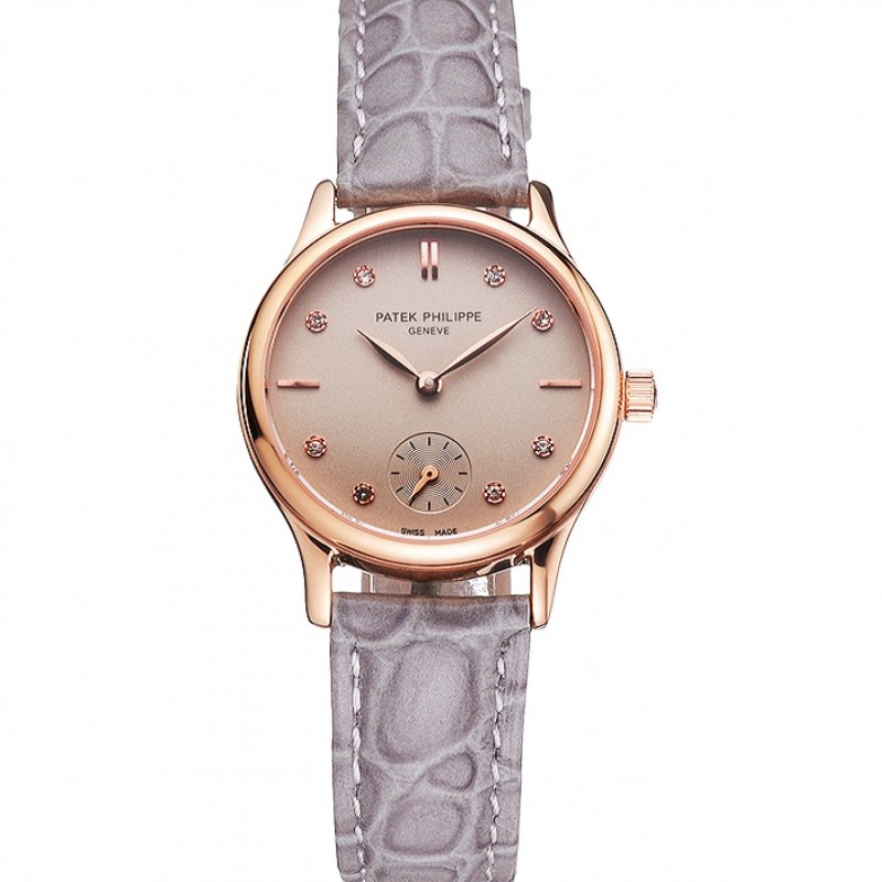 Haute qualité Replique Montre Patek Philippe Calatrava cadran gris diamant Marquages or rose gris Bracelet en cuir
