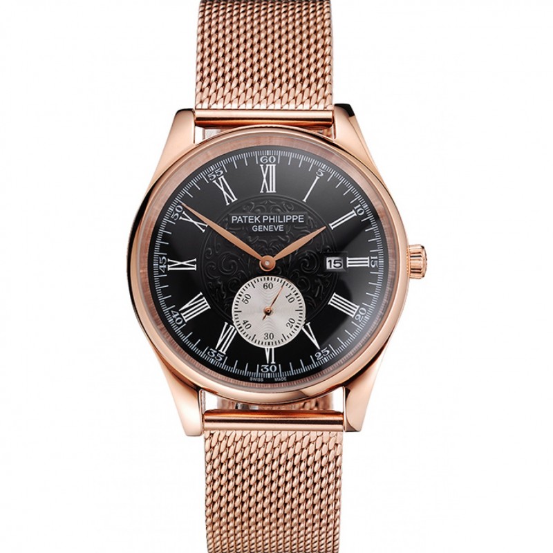 Patek Philippe Calatrava petites secondes Noir Gravé Cadran or rose et bracelet