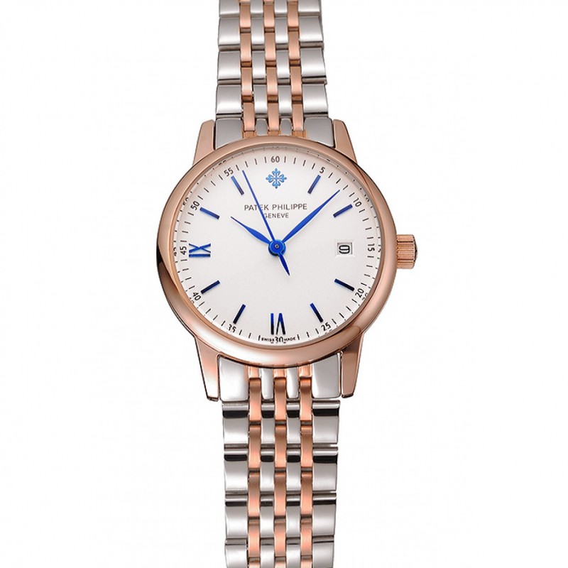 Patek Philippe Calatrava Mesdames Cadran Blanc Bleu Or Rose Numerals Deux Bracelet Tone 1453830