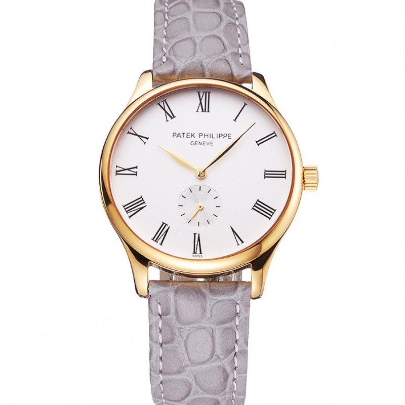 Haut Gamme Replique Montre Patek Philippe Calatrava suisse poli Lunette cadran gris bracelet en cuir noir 7659